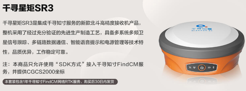 產品描述:千尋星矩SR3標準版+專業手簿+1年FindCM網絡RTK服務