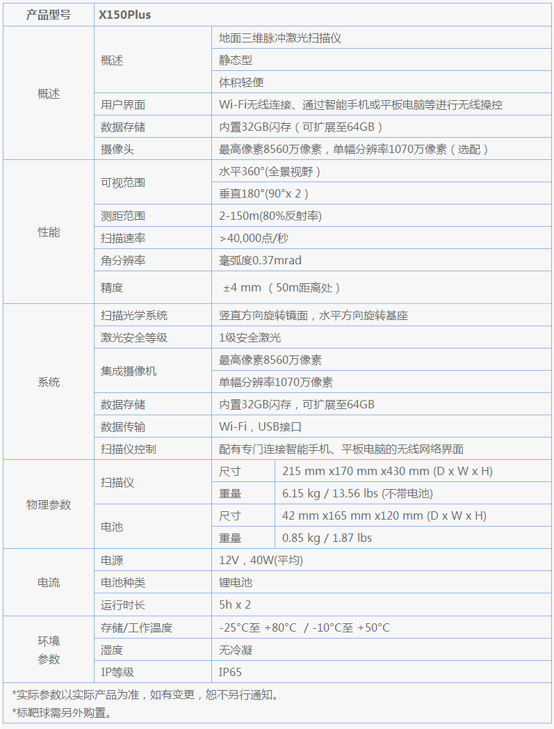 測程150m,掃描速率每秒40000點,根據數據需求可選擇精細、標準、快速和預覽四種掃描模式。全封裝式掃描鏡,可視范圍水平360°,垂直90°;角分辨率1.35′,百米處點間距為37mm;測距精度50m時小于5mm。技術指標達到國際同級設備領先水平。