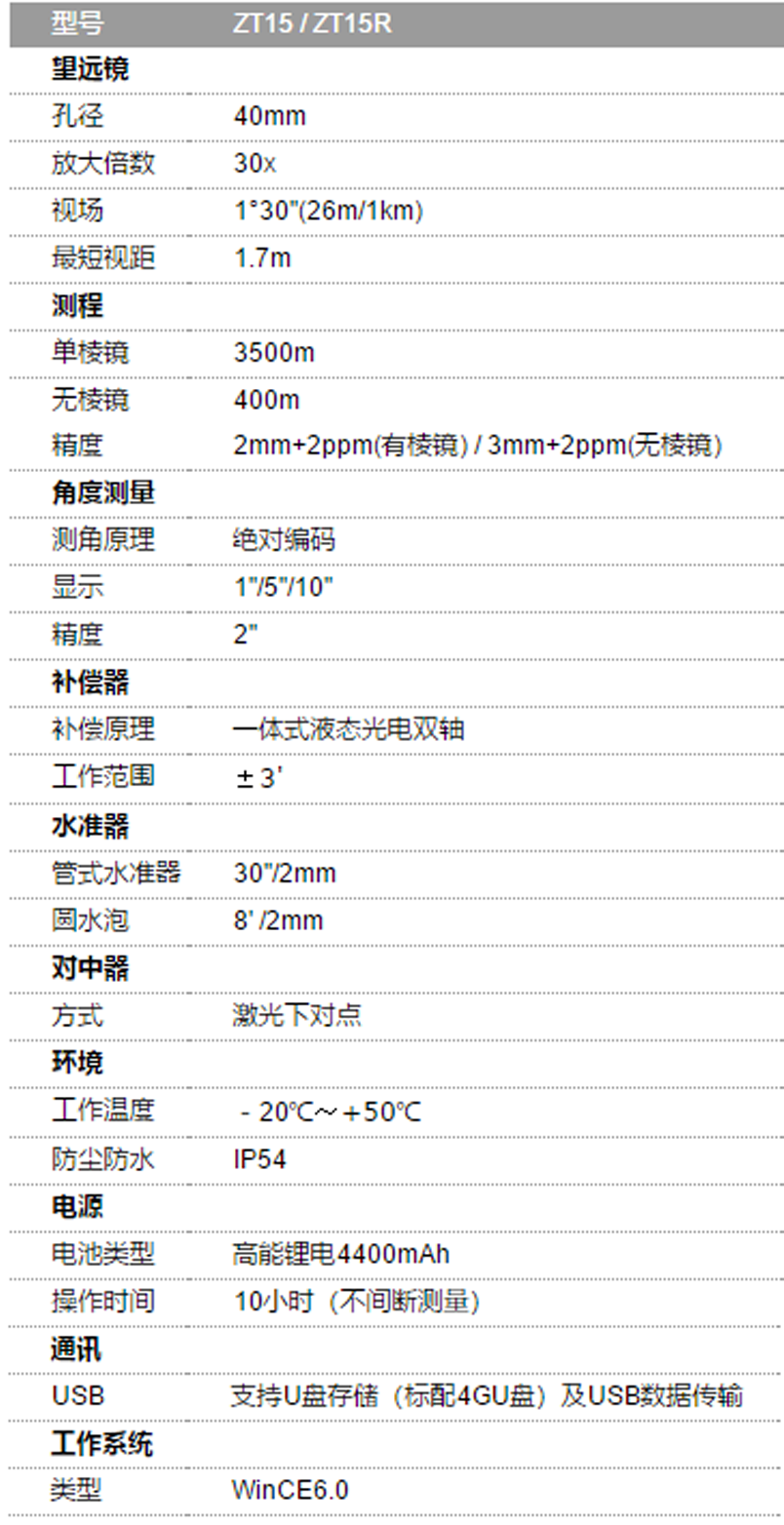 ZT15系列全站儀,是中緯全新推出的智能型全站儀,是中緯針對全球市場設計的更貼近大眾測量的全站儀。ZT15系列全站儀擁有中緯全站儀一貫的高品質、高精度技術特色,采用全新的機身架構,全新的瑞士EDM和軟件系統,價格更低,更適合廣大工程用戶。