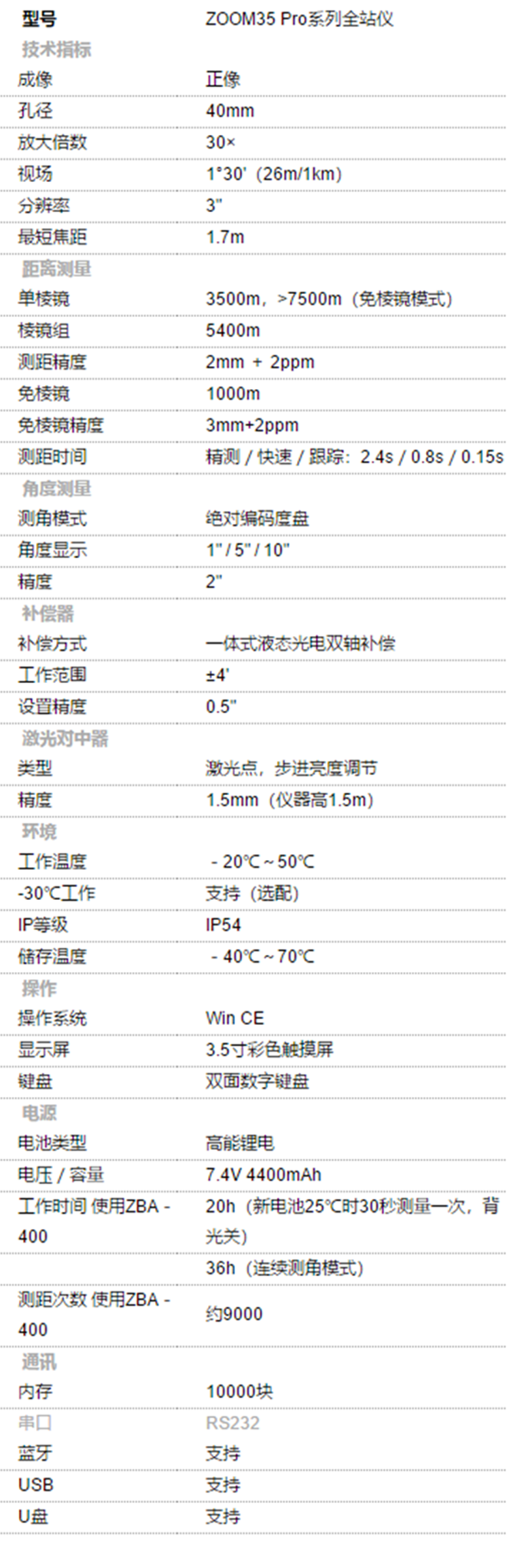 ZOOM35系列全站儀,是中緯全新設(shè)計推出的全站儀系列。秉承歐洲精湛制造工藝和理念,具備全球領(lǐng)先技術(shù),專業(yè)品質(zhì)完善至每一個細節(jié)。Zoom系列全站儀,采用更新的機身架構(gòu),儀器在長期使用中,保證一貫的高精度和令人自豪的穩(wěn)定性。 采用3.5寸彩色觸摸屏,顯示更多內(nèi)容,搭配全新設(shè)計圖標顯示更加清晰美觀,全新定制的屏幕在陽光下依舊可以清楚顯示。采用winCE操作平臺,操作更快捷,為中國用戶定制開發(fā)更多機載程序;增加藍牙及USB通訊方式;采用大容量鋰電池支持20小時作業(yè)時間;免棱鏡測程進一步增加到1000米,為高品質(zhì)工程測量及測圖提供更強勁的支持。