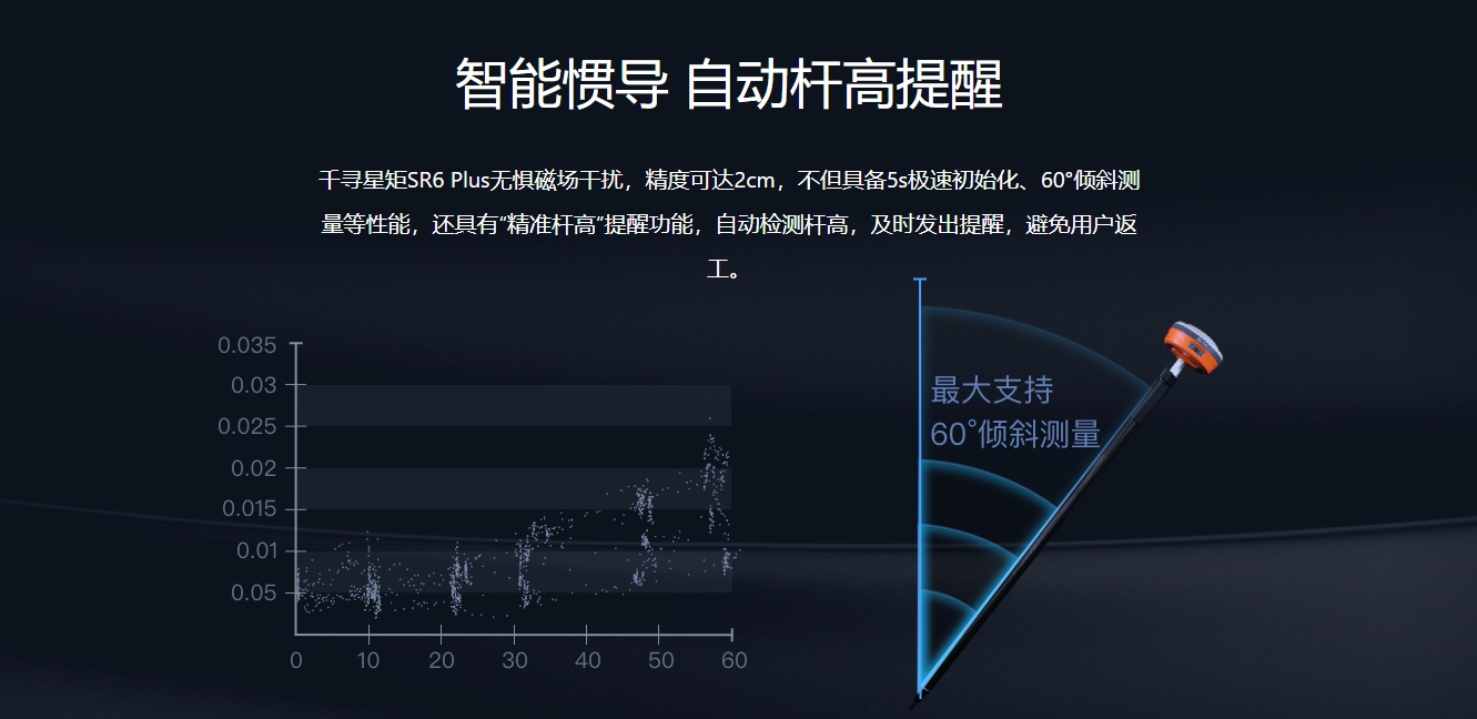 - 產品描述:千尋星矩SR6 Plus是一款人工智能互聯網RTK,內置自主研發的智能算法支持設備自動升級,具備語音控制、智能客服、遠程協助等人性化功能, 真正實現“越用越好用”。延續千尋RTK云端一體特點,具備電離層抑制能力,有效應對當前電離層抑制擾動,提升固定率和固定精度。